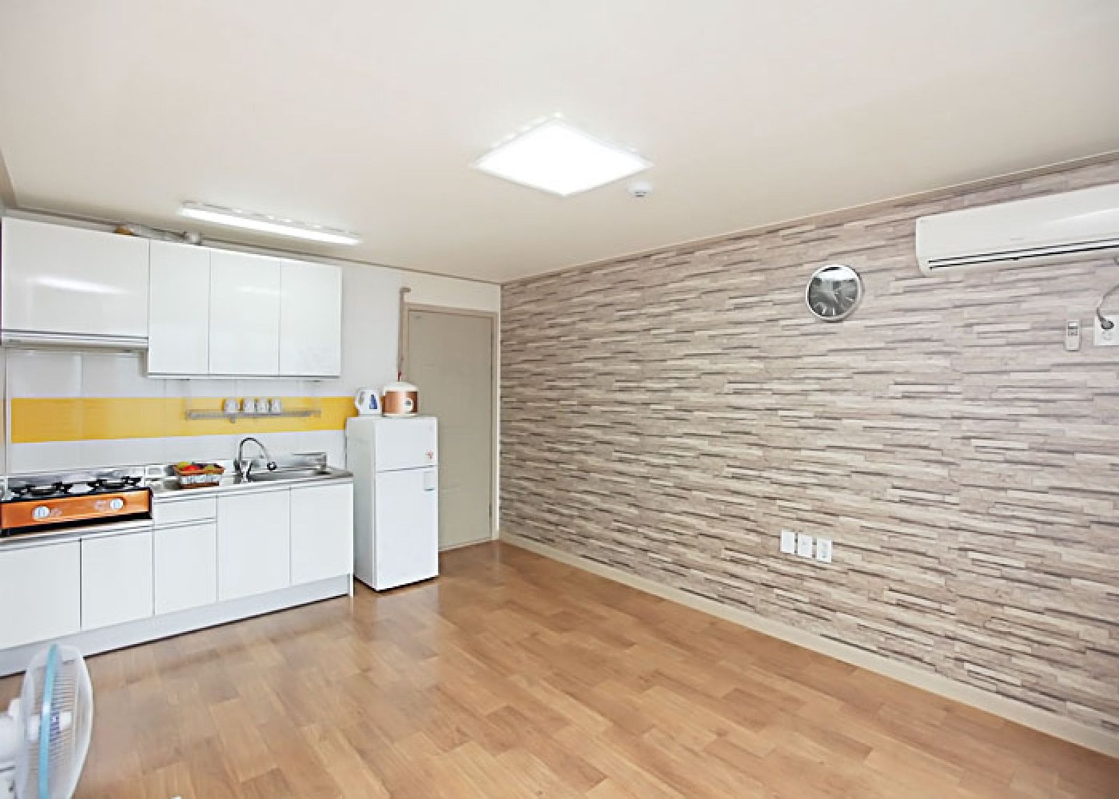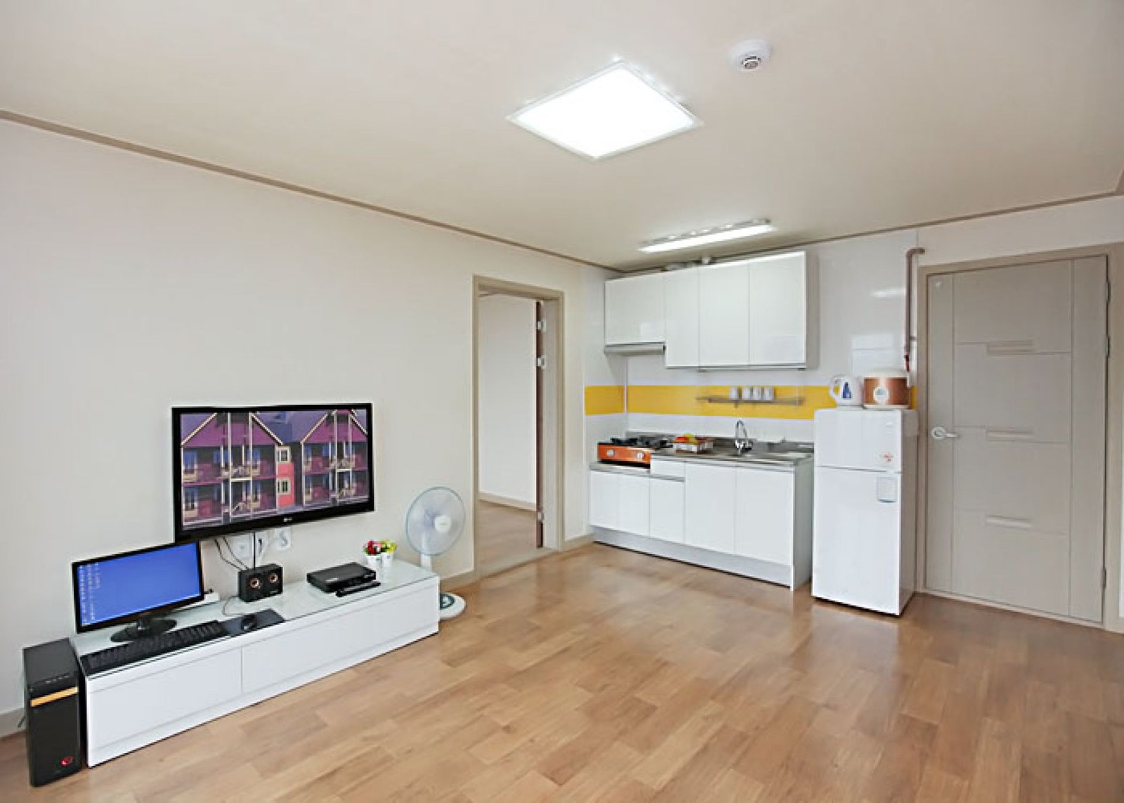 - 시설 : TV, 식탁, 에어컨, 냉장고, 가스렌지, 드라이기, 취사, 전기밥솥, 컴퓨터, 욕실용품