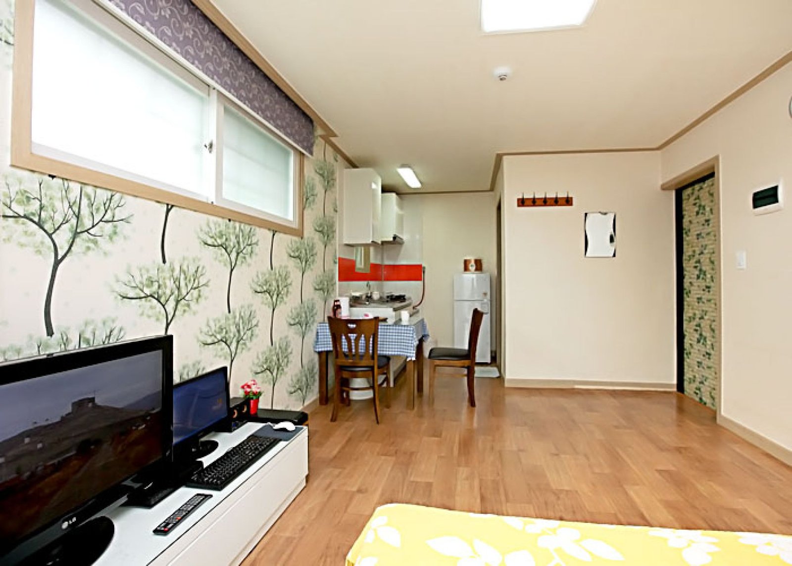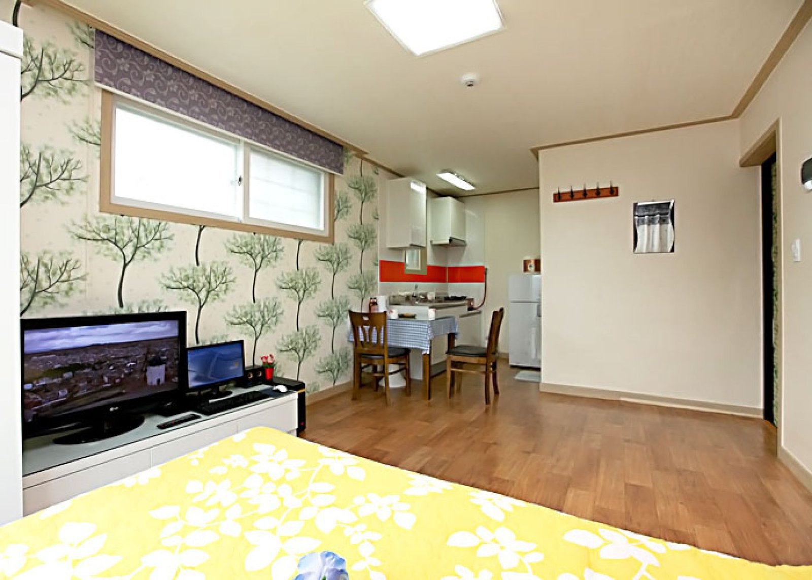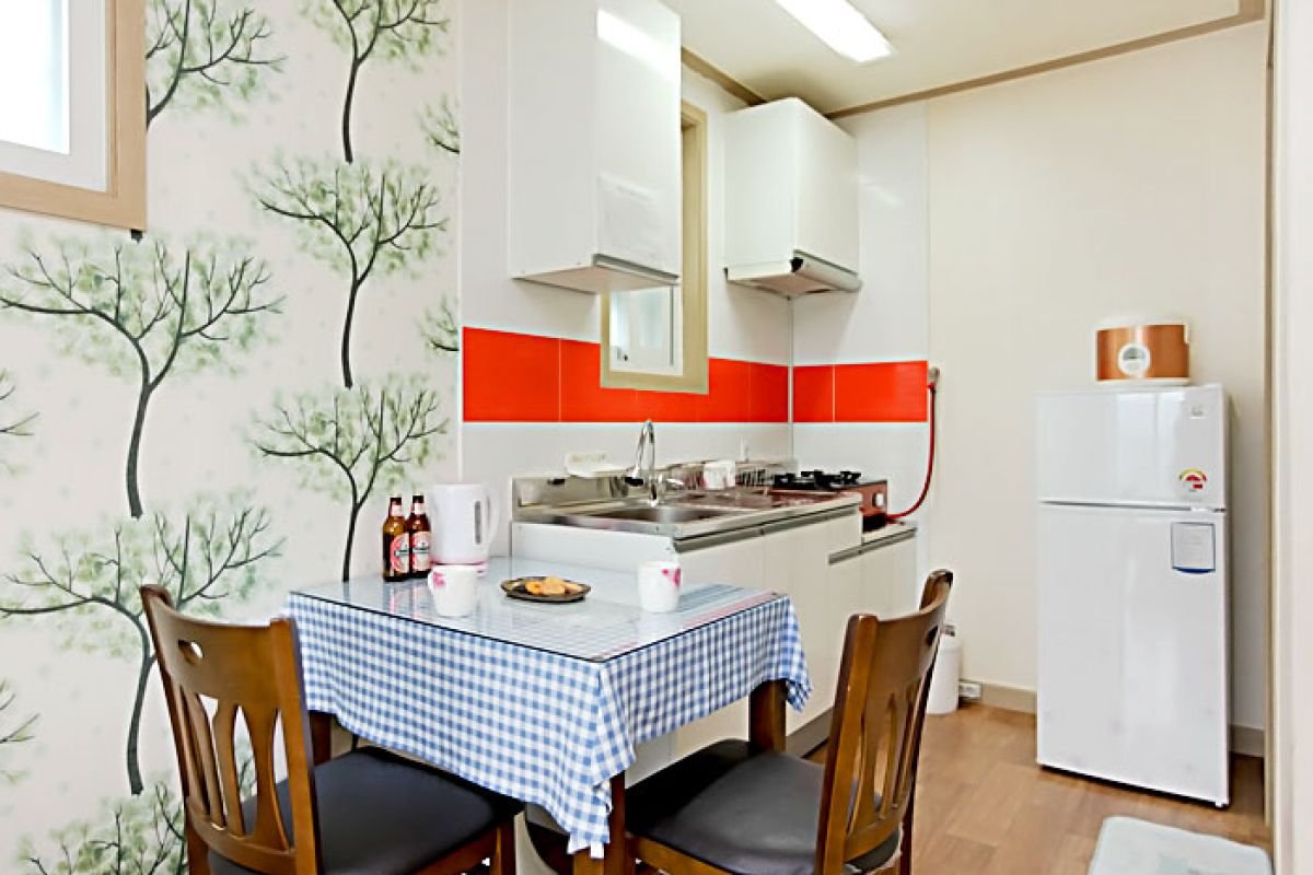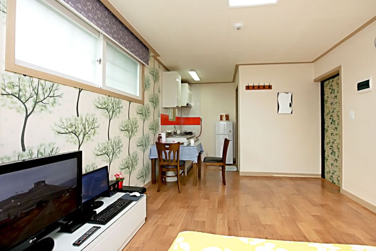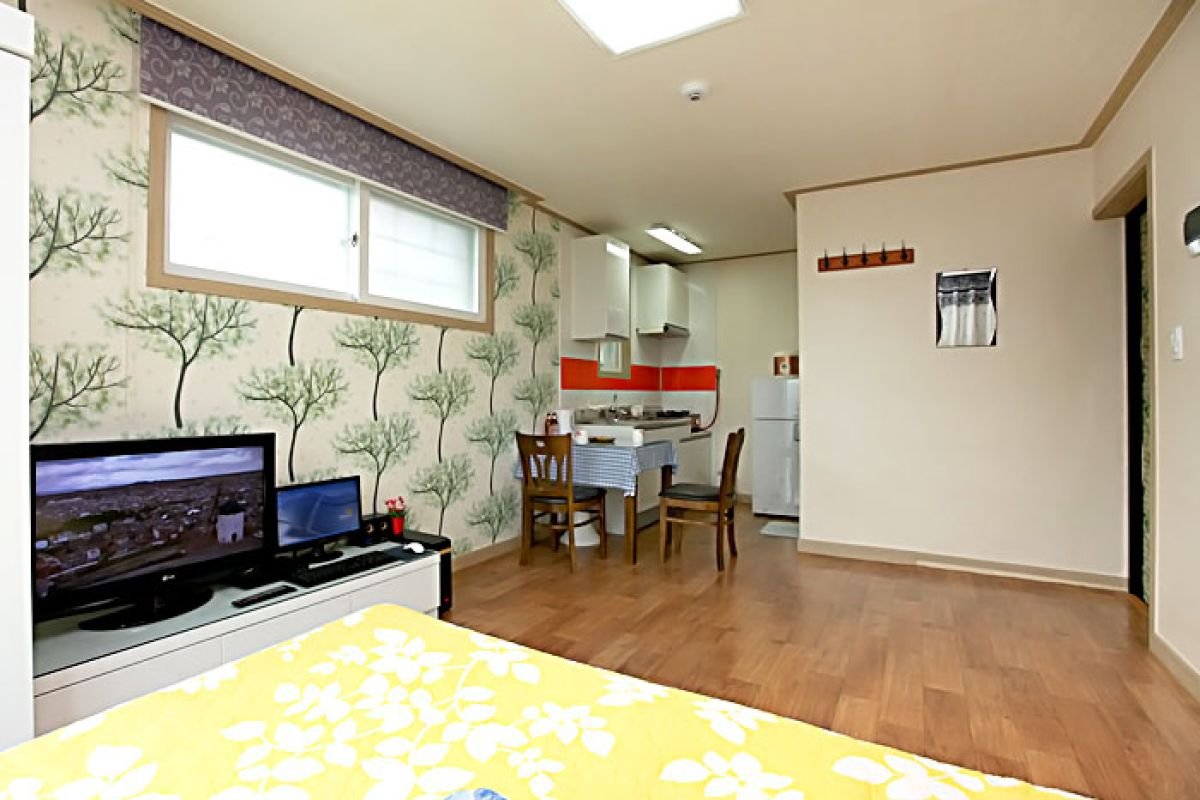 • 시설 : TV, 침대, 식탁, 에어컨, 냉장고, 가스렌지, 드라이기, 취사, 전기밥솥, 컴퓨터, 욕실용품