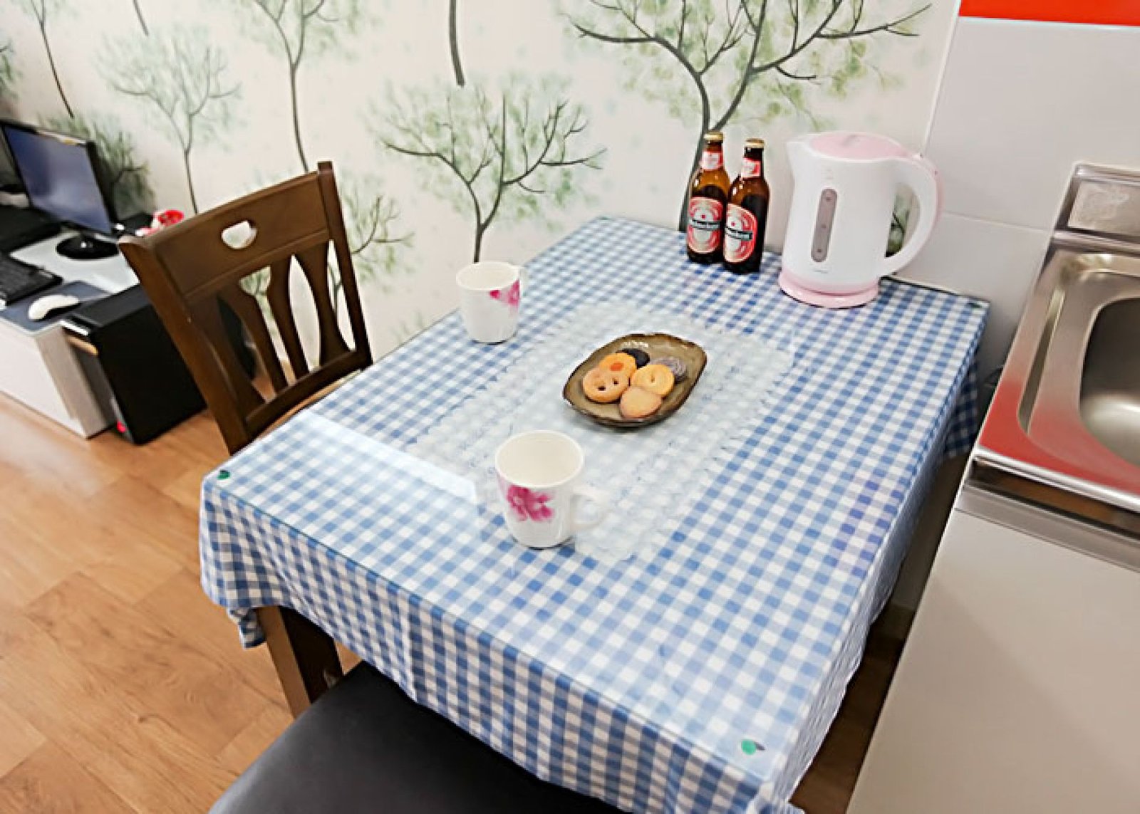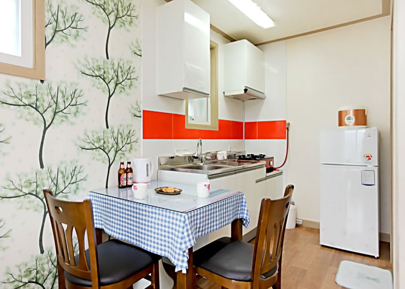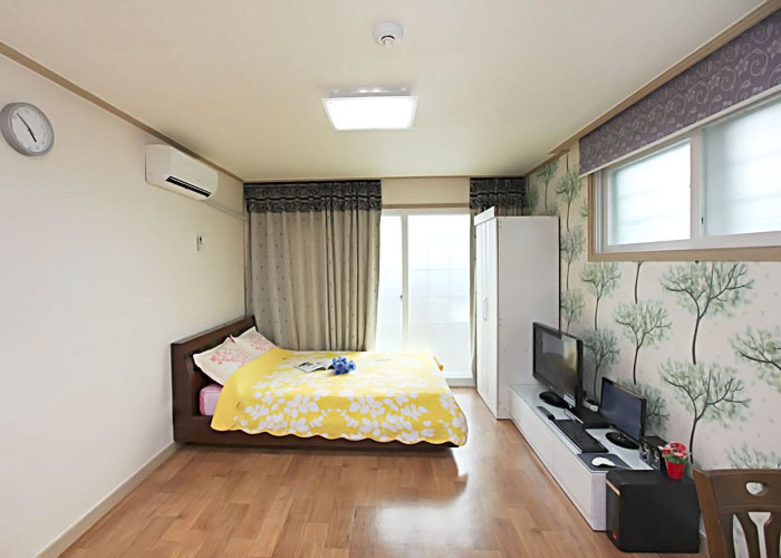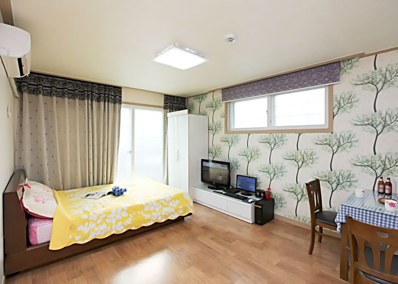 • 시설 : TV, 침대, 식탁, 에어컨, 냉장고, 가스렌지, 드라이기, 취사, 전기밥솥, 컴퓨터, 욕실용품